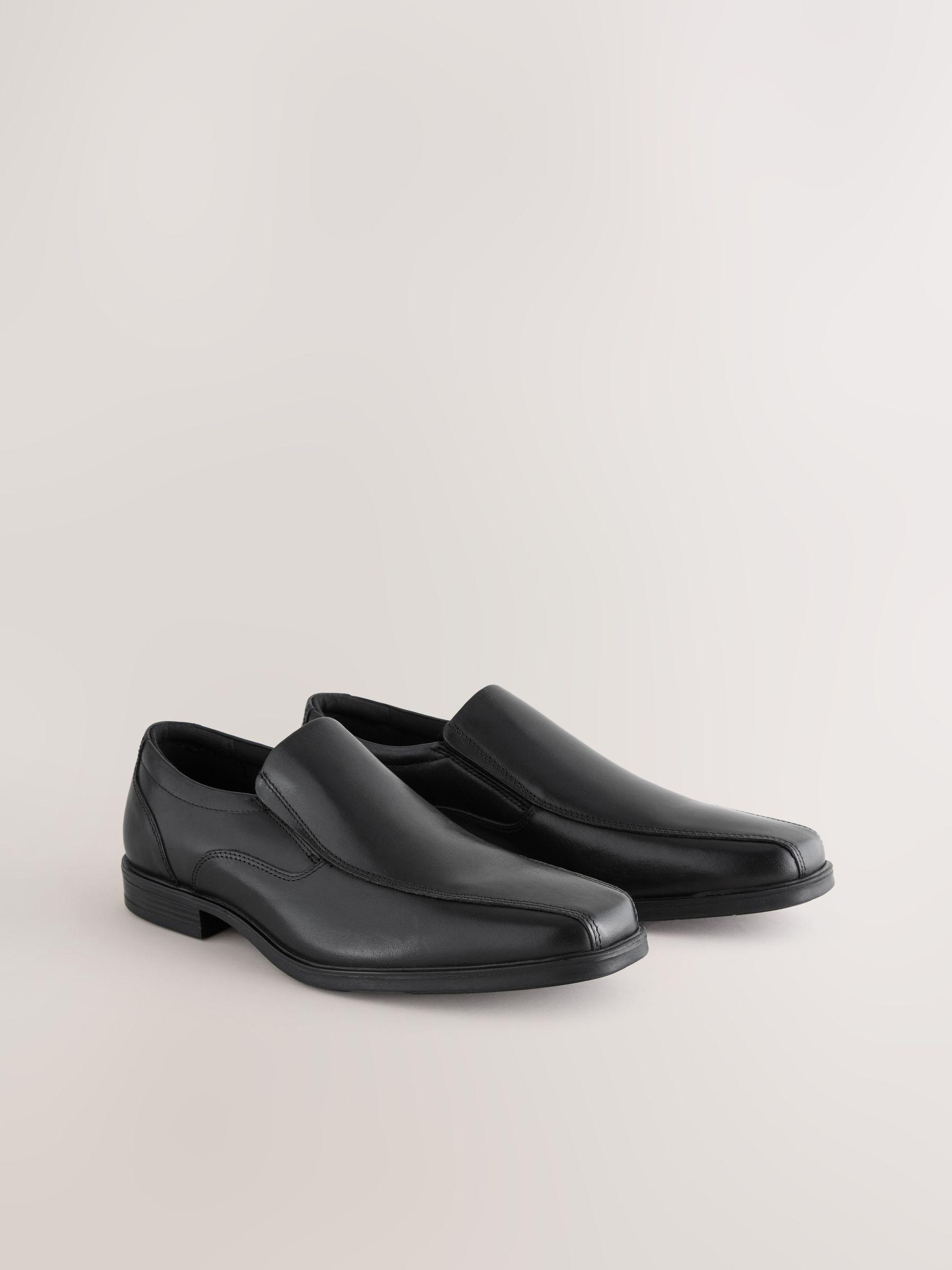Our classic and smart black panel slip-on shoes are ideal for work, school, college or any formal occasion that requires you to spruce up. Designed with an elongated square-toe and elasticated tabs for ease getting on and taking off. Finished with an Ortholite foam sole for added comfort, this easy slip-on style is a real wardrobe winner. Wide Fit for extra comfort.