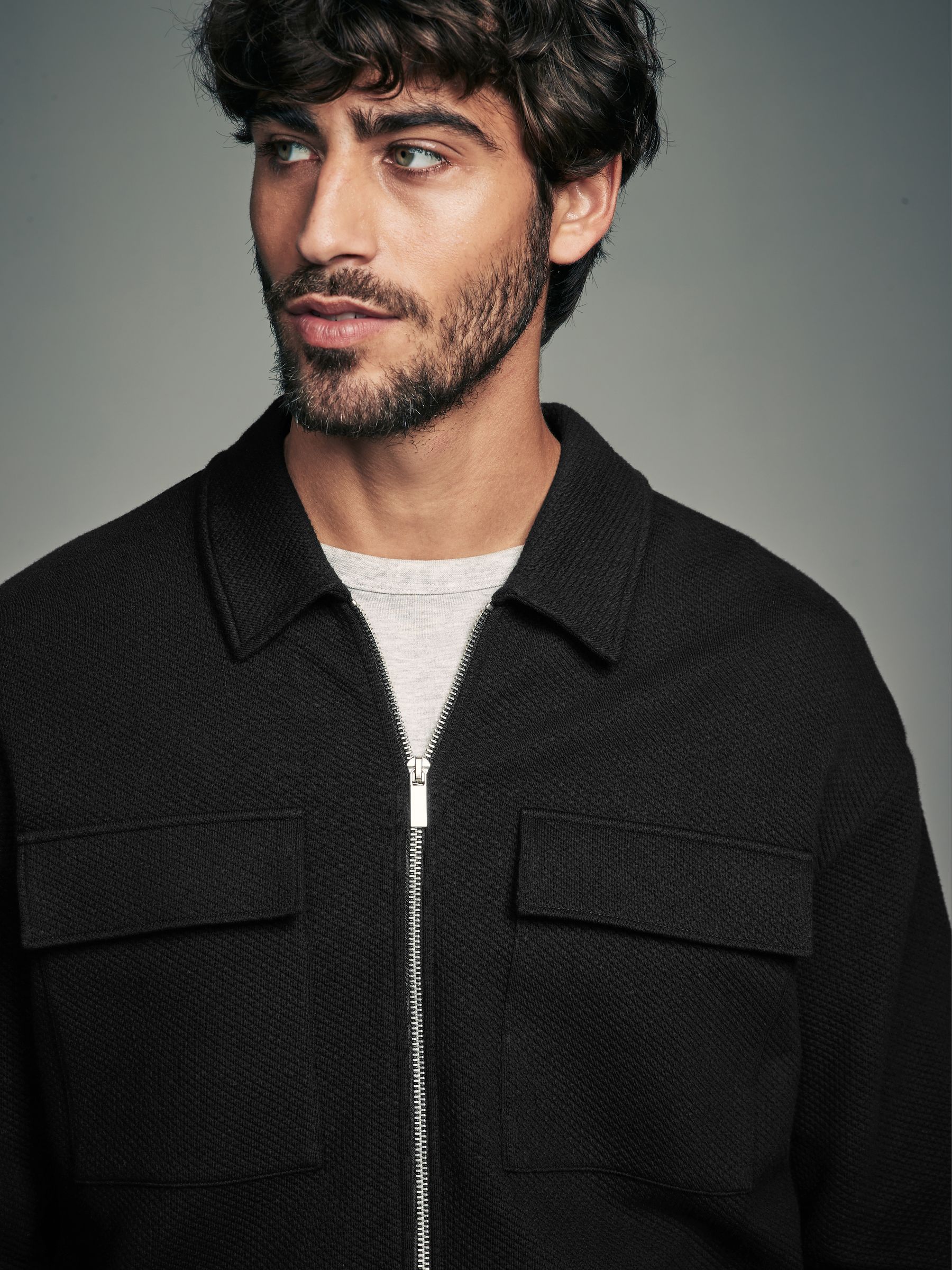 Elevate your new season look with our men’s shacket. Crafted from a cotton rich blend with a premium textured fabric, this outerwear piece is perfect for cooler days. Complete with zip fastening and chest pockets.