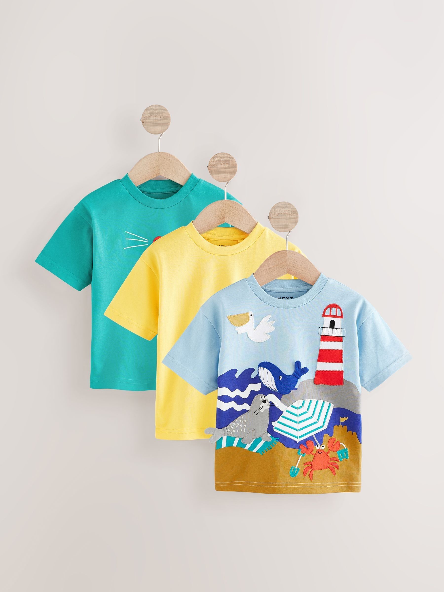 This 3-pack of cotton t-shirts are available in a selection of fun colours and graphic prints, ideal for summer with short sleeves and crewneck collars. Pair them with shorts and he’s ready for an adventure in the sun.
