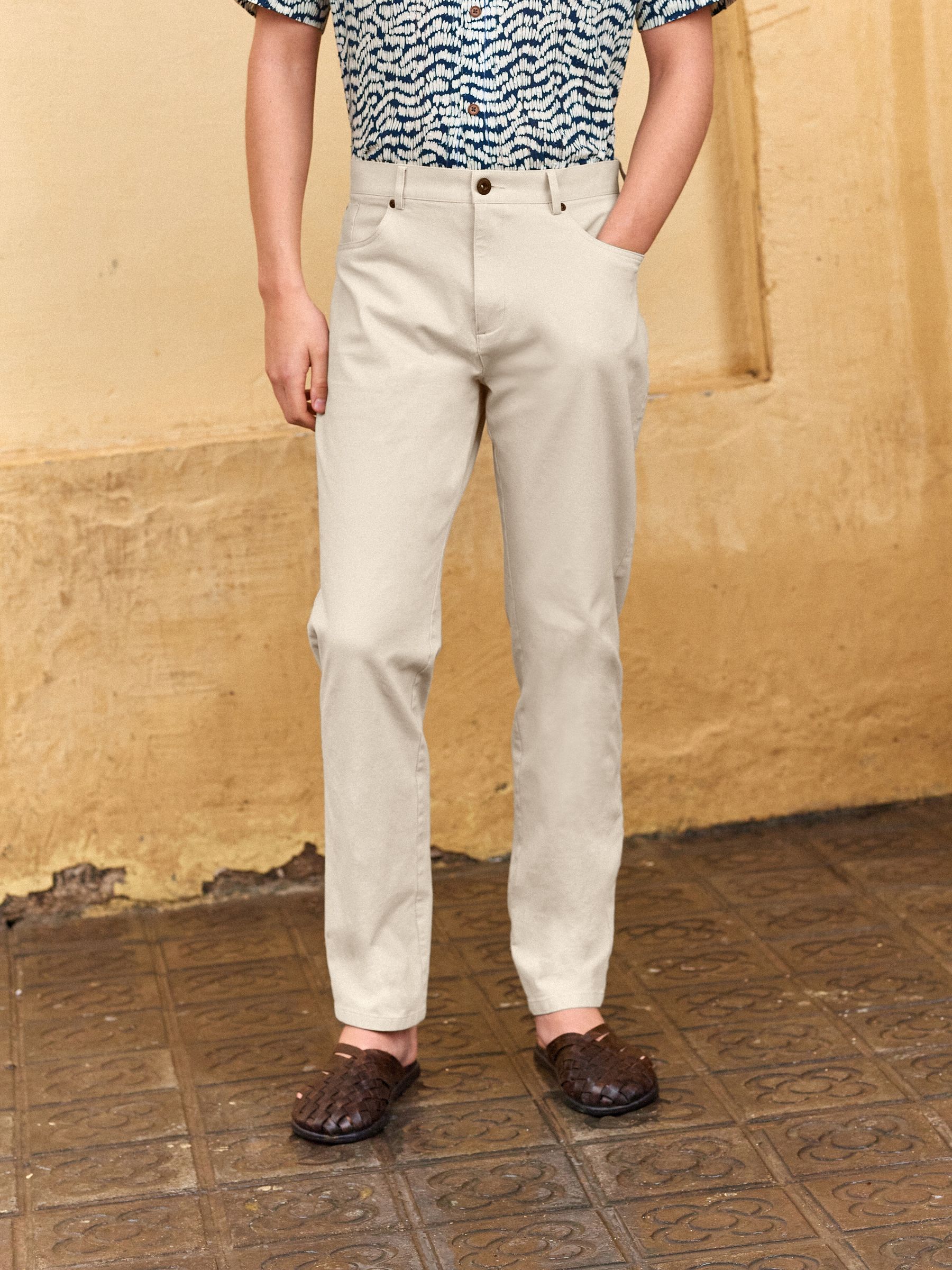 1 review for Ecru Straight Fit Textured Smart Chinos with Stretch