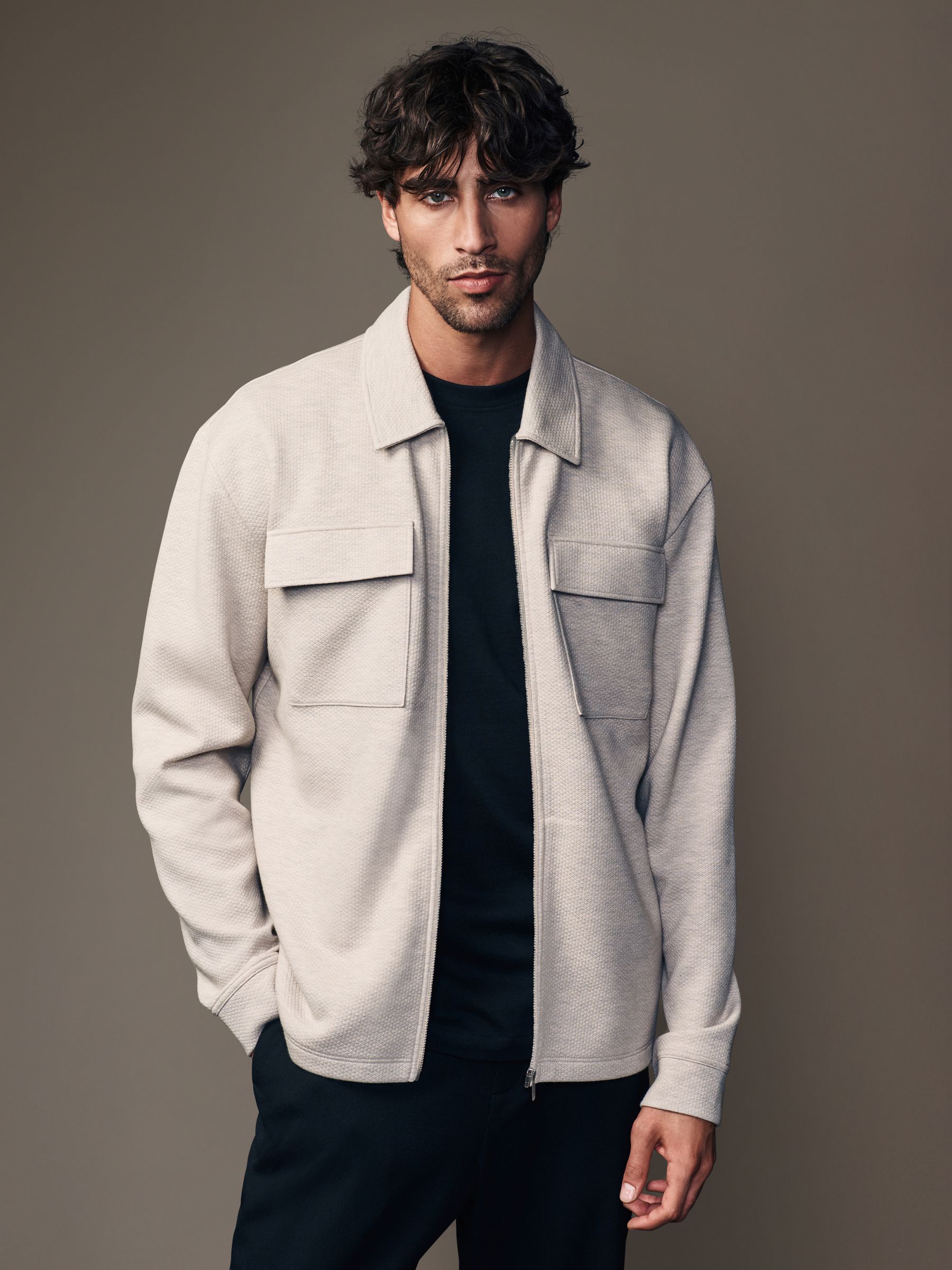 Elevate your new season look with our men’s shacket. Crafted from a cotton rich blend with a premium textured fabric, this outerwear piece is perfect for cooler days. Complete with zip fastening and chest pockets.